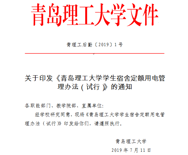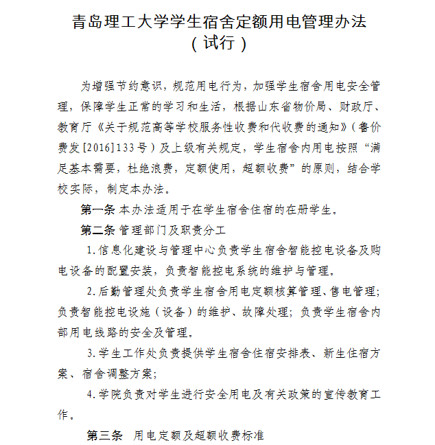 关于印发《bat365官网登录入口学生宿舍定额用电管理办法(试行)》的通知