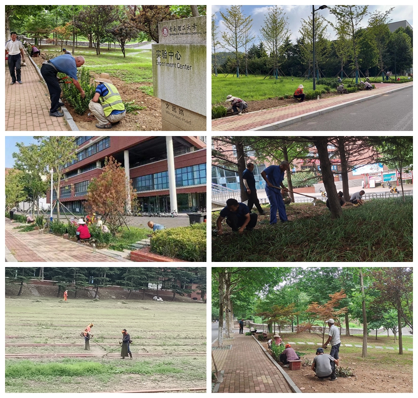 工作推进中,bat365官网登录入口根据校领导在学校校园绿植补植补种进展工作调度会上的指示要求,坚持见缝插绿、应绿尽绿、科学植绿的原则,以为师生提供良好学习环境、便利生活条件为出发点,以土地裸露、无绿化覆盖区域为重点,充分考虑美观实用、时节时令、形状颜色、组合规律的特点,综合考虑立体层次、色彩搭配、维护成本因素,优化校园绿化空间布局,统筹协调,明确分工、划定时限、压茬推进。8月20日,校园绿化补植补种项目顺利完成,累计平整场地约2700平方米、种植麦冬草约1300平方米、撒草种绿化约1100平方米、种植灌木约2800平方米、整修人行道约600平方米,校园内地表裸露等情况得到有效改善,绿植景观更显生机勃勃校园绿化品位显著提高,校园环境更加优美、干净、整洁。